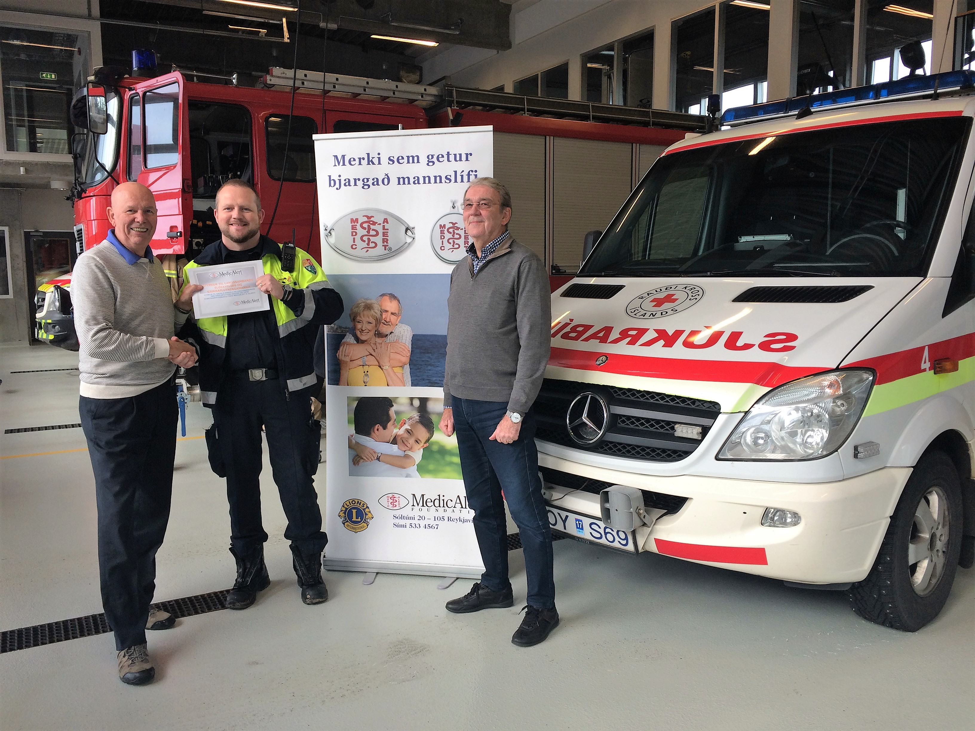 Nýverið gerðu MedicAlert samtökin á Íslandi kynningarmyndband um starfsemi sína. Við það nutu þau góðrar aðstoðar Slökkviliðs Höfuðborgarsvæðisins. Gerð þessa mikilvæga myndbands heppnaðist einstaklega vel og vildu forsvarsmenn samtakanna láta í ljós þakklæti sitt með peningastyrk til söfnunarátaks vegna kennslu- og þjálfunarbíls fyrir sjúkraflutningamenn.